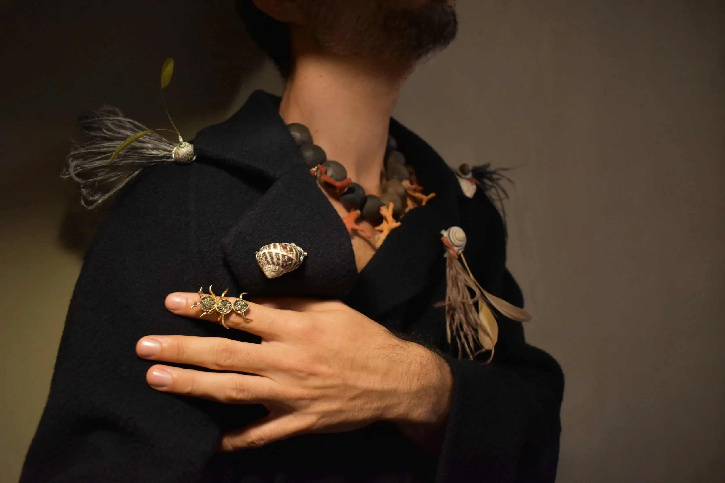 Guided by a phrase inherited from Doña Felipa, the ants feed the señores aires, and there are things only the healer knows, the ants appear as a central symbolic axis throughout the exhibition. They emerge embroidered into textiles, shaped into organic jewellery, traced across canvases, or gathered in installations that evoke caves, roots, and swirling winds. As messengers and mediators, these small shamans remind us that the sacred does not always reveal itself in force. Sometimes its power lies in the quiet persistence of many working together.